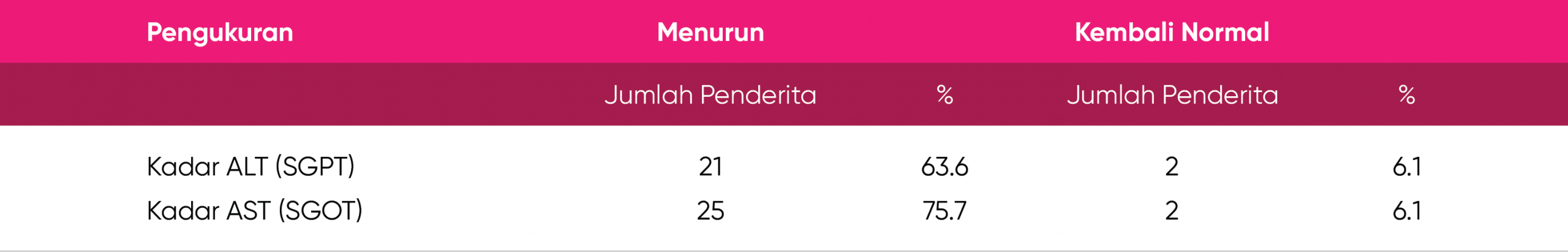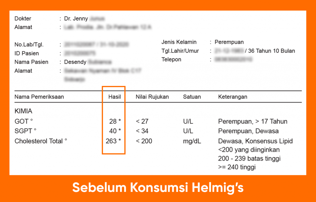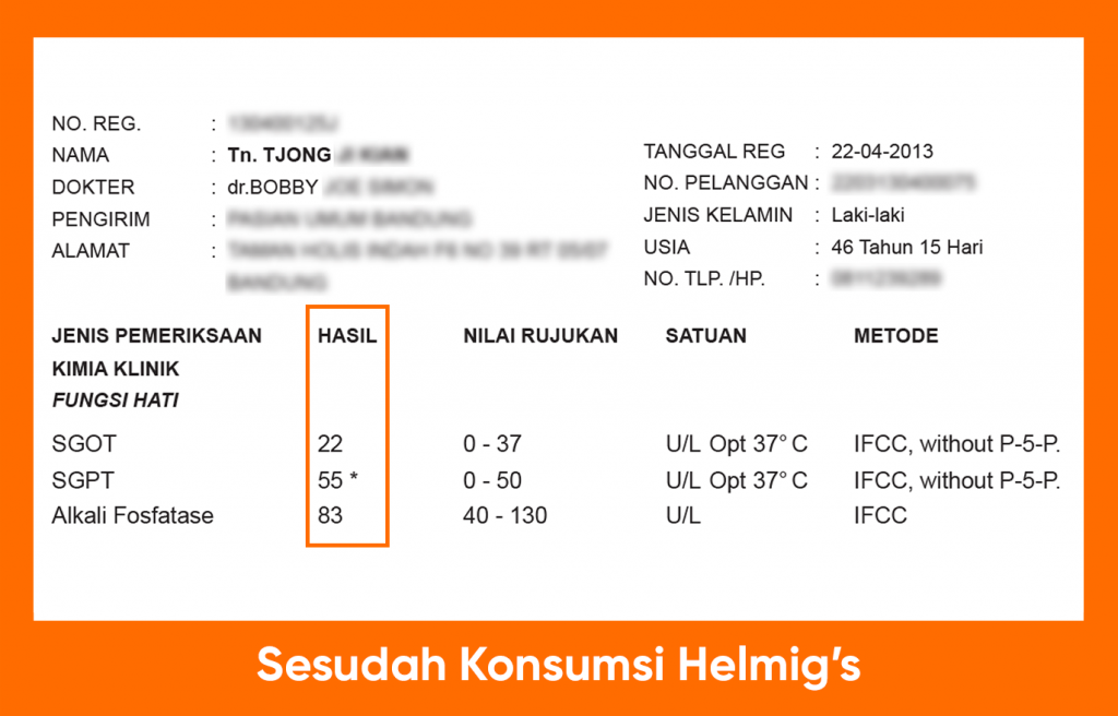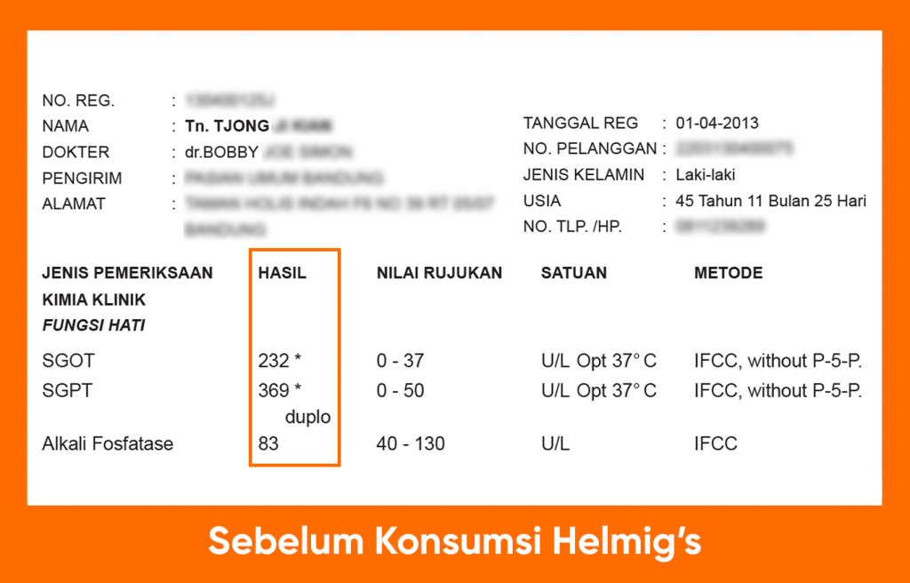 Saya penderita Fatty Liver dengan SGOT 92 SGPT 170, dan sering mengalami nyeri ulu hati. Setelah mencoba Helmigs, nyeri ulu hati saya berkurang drastis dan mulai hilang.